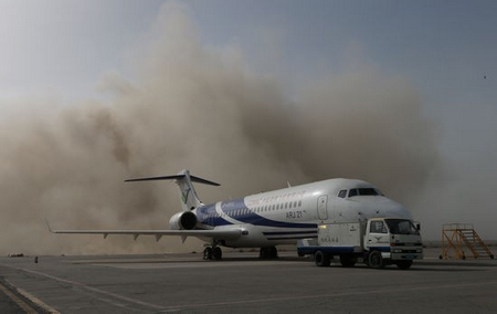 中國經(jīng)濟網(wǎng)訊 2013年3月31日,ARJ21-700飛機102架機進(jìn)行了轉場(chǎng)后的首次檢飛。102架機于上午9時(shí)21分在嘉峪關(guān)機場(chǎng)起飛,經(jīng)過(guò)1小時(shí)46分鐘的飛行,于11時(shí)07分降落,順利完成了檢飛任務(wù)。局方試飛員對飛機性能和狀態(tài)給予了肯定。