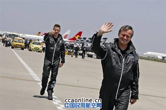法國“百年靈”表演隊的成員跟記者揮手示意。攝影:王誠