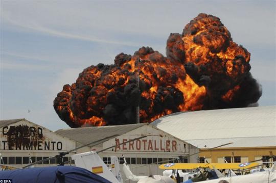 事故發(fā)生在西班牙首都馬德里西南方的Cuatro Vientos 機場(chǎng),當時(shí)約有3000名觀(guān)眾觀(guān)看在那里舉行的航展。當失事飛機撞上電線(xiàn)并引發(fā)爆炸、噴射出巨大火球時(shí),很多觀(guān)眾都被驚得目瞪口呆,其中一名觀(guān)眾拍攝下了事故當時(shí)的畫(huà)面。