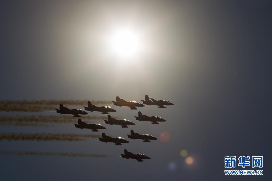 8月3日,在匈牙利中部的凱奇凱梅特空軍基地,來(lái)自意大利空軍的“三色箭”飛行表演隊在匈牙利國際航空展上表演! ⌒氯A社發(fā)(弗爾季·奧蒂洛攝)