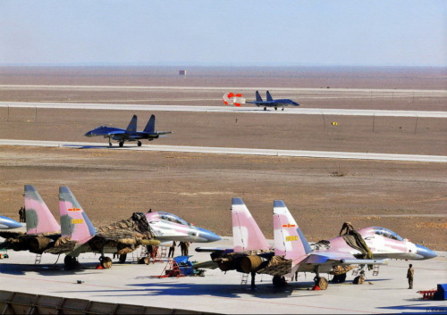 解放軍廣空部隊粉色涂裝蘇-30MKK假想敵戰機部隊在西北基地與殲11戰機對抗訓練照曝光。