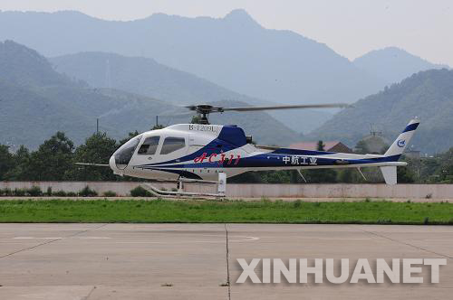 資料圖片: 2011年9月1日,國產(chǎn)2噸級輕型民用直升機AC311正在執行“自轉著(zhù)陸”科目試飛。