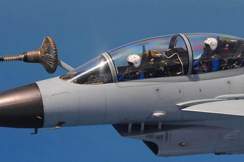 南海上空進(jìn)行空中加油訓練的雙座型殲-10戰機