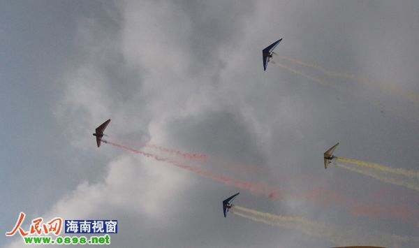 29日的萬(wàn)寧晴空萬(wàn)里,飛行特技運動(dòng)員們早早便做好了準備,熱氣球、動(dòng)力滑翔傘、三角翼、航空模型等飛行器材也準備完畢,早上10點(diǎn),隨著(zhù)歡樂(lè )的音樂(lè )響起,率先飛過(guò)場(chǎng)地的是捧著(zhù)彩帶的三角翼編隊。