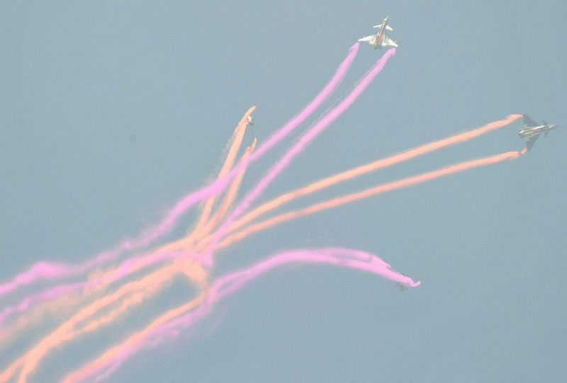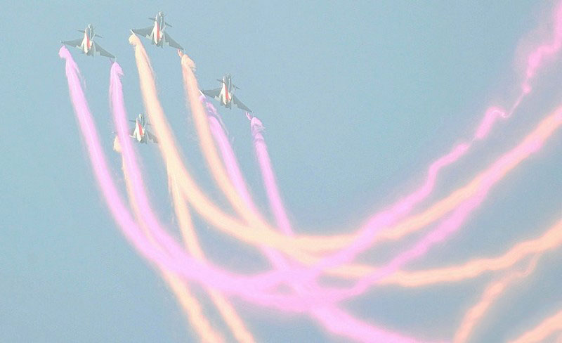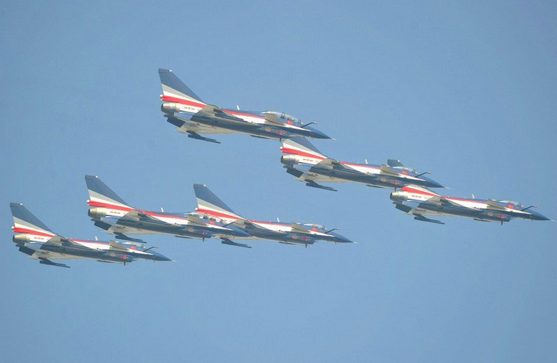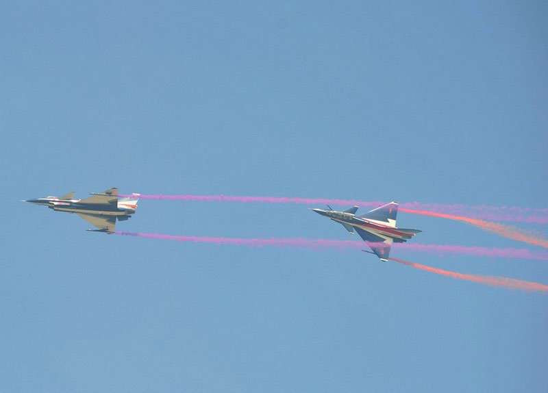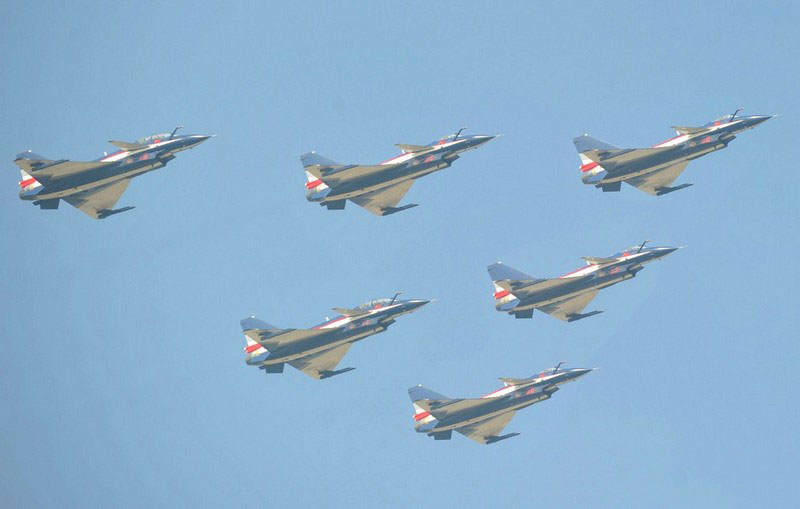 【環(huán)球網(wǎng)赴珠海航展特派報道組綜合報道】第九屆中國國際航空航天博覽會(huì )(珠海航展2012)將于11月13日-18日在廣東省珠海市金灣區三灶鎮隆重舉行。開(kāi)展當日,中國空軍八一飛行表演隊的6架殲-10戰機翱翔藍天,漫步云端。