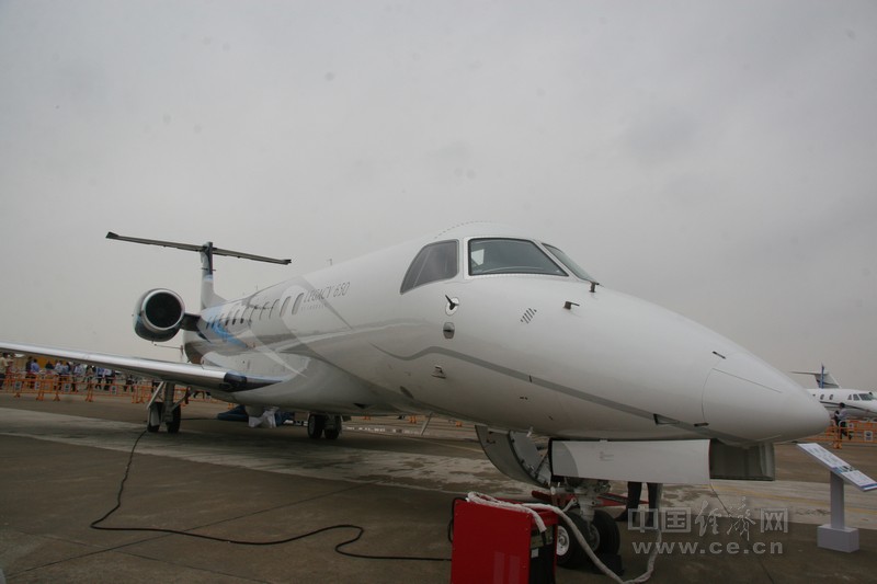 中國經(jīng)濟網(wǎng)珠海航展報道團記者王飛報道 在2012珠海航展上靜態(tài)展示的巴西航空的萊格賽650。