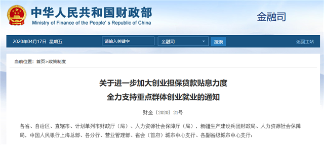 經(jīng)濟日報-中國經(jīng)濟網(wǎng)北京4月17日訊 4月15日,財政部、人力資源社會(huì )保障部、中國人民銀行聯(lián)合發(fā)布了《關(guān)于進(jìn)一步加大創(chuàng )業(yè)擔保貸款貼息力度全力支持重點(diǎn)群體創(chuàng )業(yè)就業(yè)的通知》(以下簡(jiǎn)稱(chēng)“通知”),通知指出,從印發(fā)之日至2020年12月31日,對包括文化旅游等行業(yè)因疫情暫時(shí)失去收入來(lái)源的個(gè)體工商戶(hù)予以適當提高額度、允許合理展期、降低利率水平、合理分擔利息等貸款貼息政策。