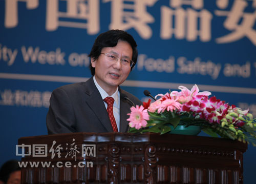 經(jīng)濟日報總編輯庹震在第三屆中國食品安全論壇上致辭 中國經(jīng)濟網(wǎng)王維亮攝