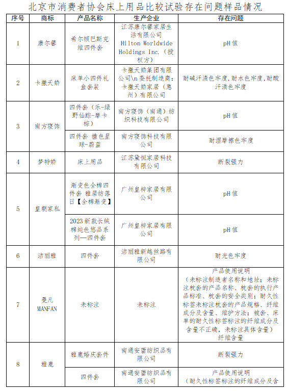 北京市消協(xié)發(fā)布:15個(gè)床上用品品牌樣品不達標