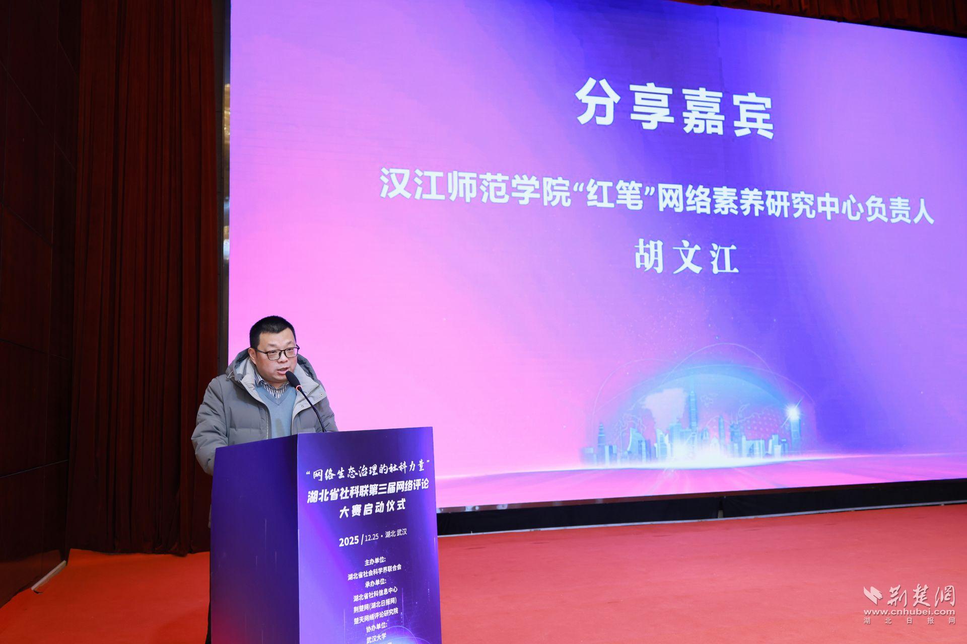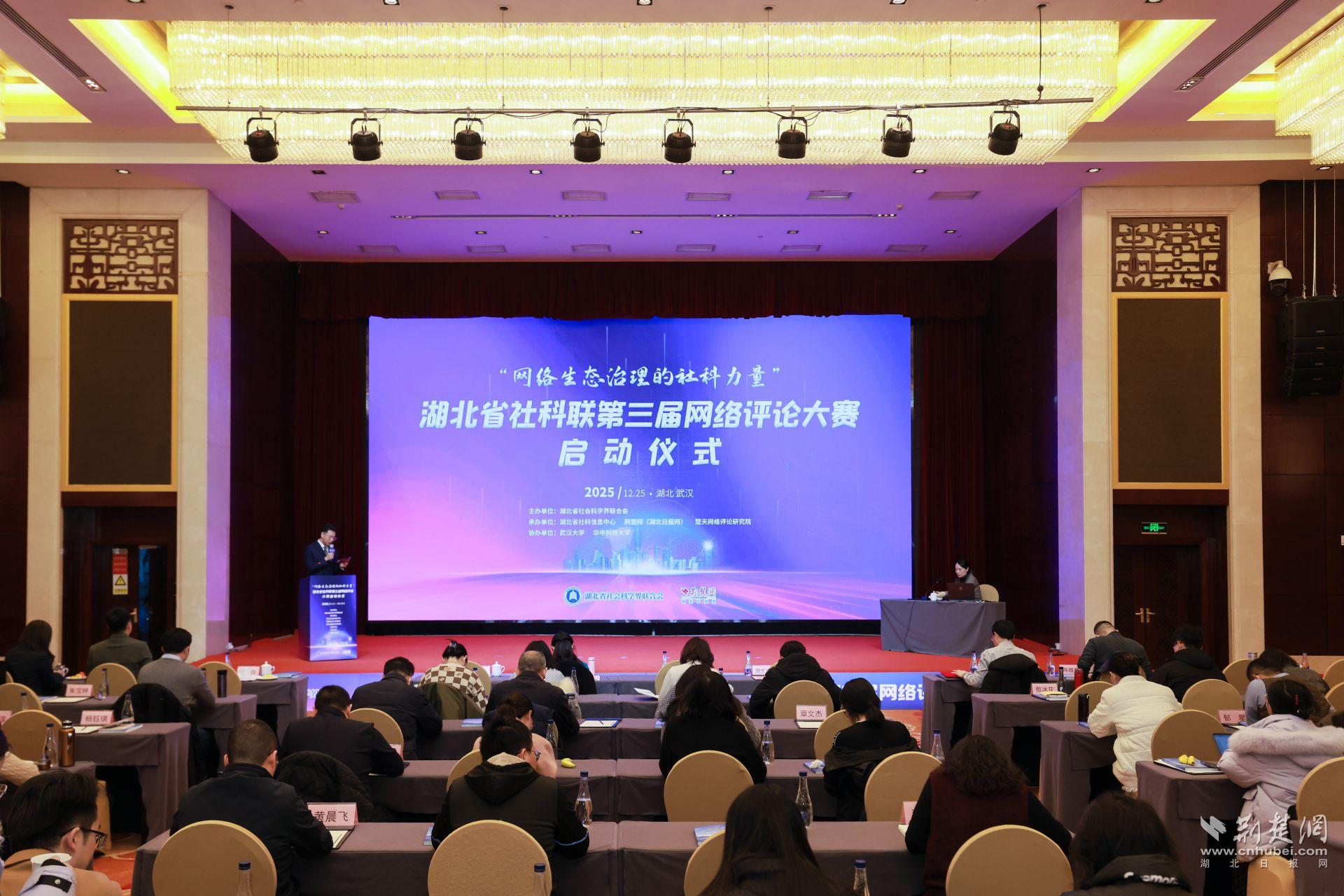 荊楚網(wǎng)(湖北日報網(wǎng))訊 (記者 丁楚風(fēng))冬日蓄勢,春潮待發(fā)。12月25日,武漢楚天粵海國際大酒店內暖意融融,思想的火花在這里迸發(fā)碰撞。由湖北省社會(huì )科學(xué)界聯(lián)合會(huì )主辦,湖北省社科信息中心、荊楚網(wǎng)(湖北日報網(wǎng))、楚天網(wǎng)絡(luò )評論研究院承辦的“網(wǎng)絡(luò )生態(tài)治理的社科力量”——湖北省社科聯(lián)第三屆網(wǎng)絡(luò )評論大賽正式啟動(dòng)。